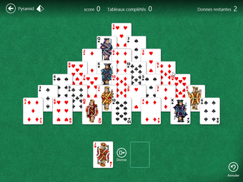 Enfin, la version Pyramide est un jeu de cartes dans lequel vous devez réaliser des paires de cartes dont la somme est égale à 13 afin de les retirer du tableau et d'atteindre le sommet de la pyramide. Plus vous videz des tableaux, plus vous marquez des points.